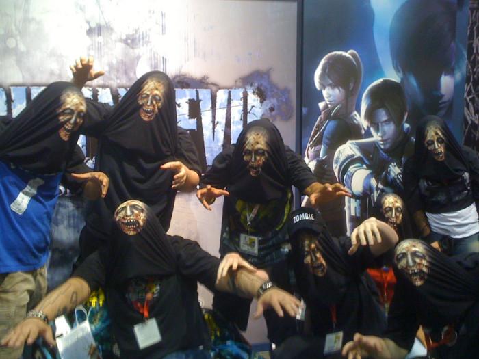 Leave it to Capcom to go and cook up one of the coolest, craziest pre-order T-shirts I’ve ever seen (beating even that insanely groovy tie-dyed Raz T-shirt from Psychonauts) and they know it. Gamers who pre-order Resident Evil: The Darkside Chronicles for the Wii from GameStop will receive a ridiculously versatile T that, when pulled over the head, turns into an instant zombie disguise.