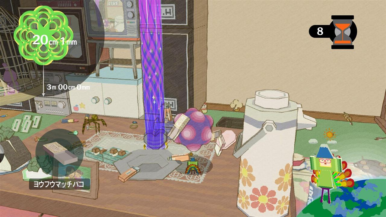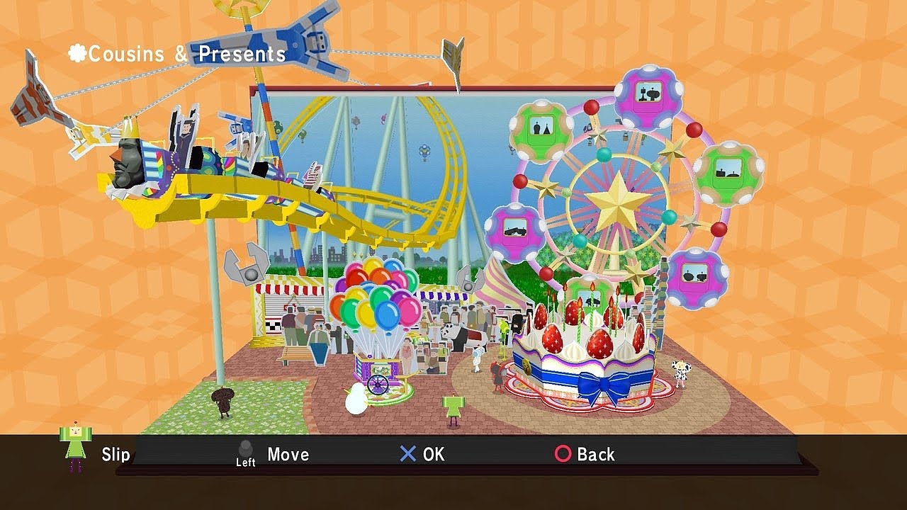 An unfortunate accident has caused the King of All Cosmos to lose his memory and all the stars to disappear from the night sky. The Prince must use his finely tuned Katamari rolling skills once more to re-create the absent celestial bodies, save his royal father and restore order to the Cosmos. Thumb tacks, sushi, cats, people, skyscrapers, ocean liners and continents – nothing is safe as the Prince makes his way through the largest variety of stages in a single Katamari game.