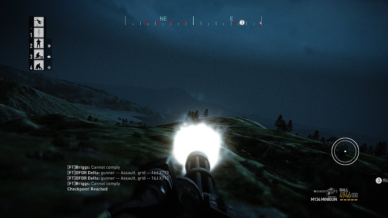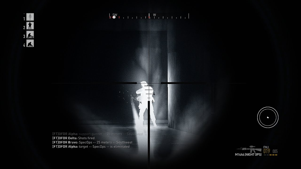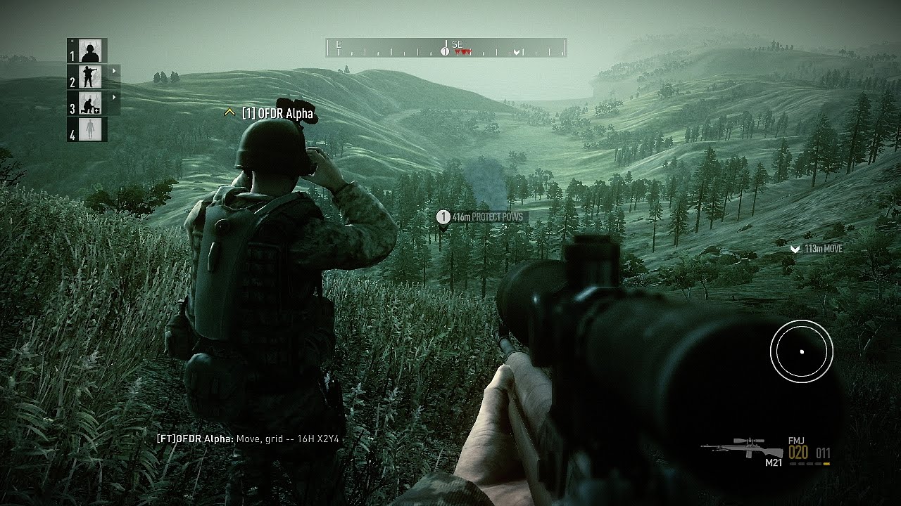 During a co-op game, the host assumes the role of fire team leader and the remaining players choose their role, including medic, rifleman, engineer or anti-tank specialist, via the load out screen. The fire team leader is responsible for issuing specific commands, such as directing suppressing fire, setting way points and instigating flanking manoeuvres. Similarly, if players take control of a vehicle during a mission, roles specific to that vehicle become available, such as driver, commander, gunner or co-pilot in a helicopter.