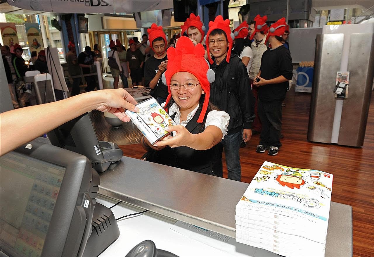 Maxwell Mania! Hundreds of early-bird fans wear rooster hats inspired by the character Maxwell as they wait to be the first to purchase the new video game Scribblenauts at a pre-launch event at Nintendo World store on Sunday, Sept. 13, 2009.