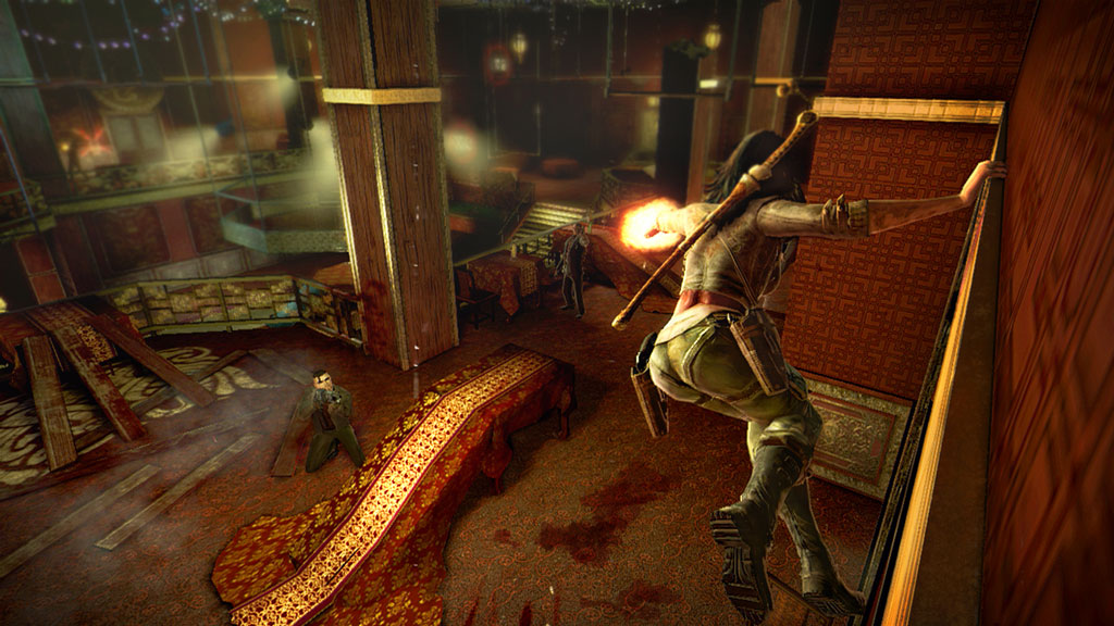 During its deadly dozen levels, the game doles out its wickedly paced action set pieces at breakneck pace, only occasionally stopping for a bit of platforming so Rubi can jump and wall-run to her next killing spree. Although this is a strictly on foot affair, Rubi will get her share of vehicular action, in quick time event form, even taking to (and falling from) the not so friendly skies in a truly jaw-dropping (and hilarious) action sequence. The violence here is super-stylized and despite the repetitive quips she spouts, you’ll find Ms. Malone quite likable if you prefer your game heroines as tough as nails and (a little psychotic). Hell, the fact that she gets health boosts from boozing it up at checkpoints makes her someone you’d want on your side in a real life bar fight. Er, provided you’ve left the bar before she started beating the crap out of everyone inside.