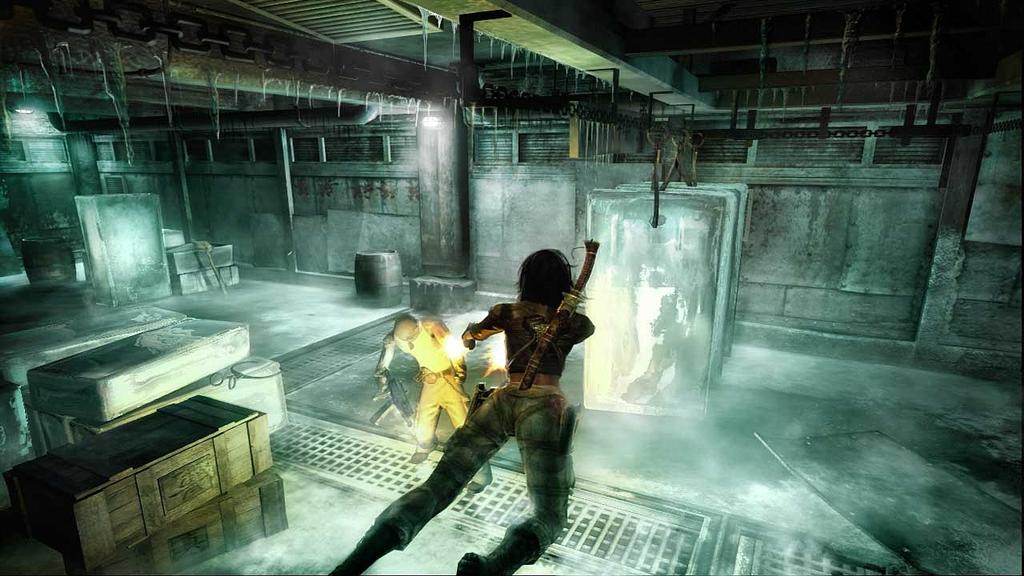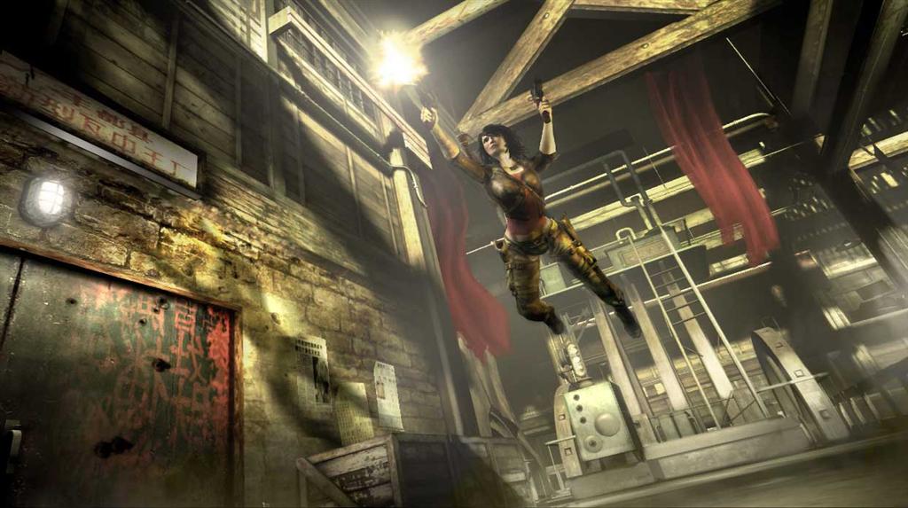 In terms of character models, Rubi gets the most love as do the game’s main characters while enemy goons are mostly dark-suited cannon fodder with interchangeable faces and weapons. Environments are gorgeous, but as mentioned above, more stuff should have been smash-able. Since the two games are quite similar in gameplay, I’ll hold up Stranglehold as a sort of benchmark for insane amounts of destructible objects in a game world (no, I haven’t played Uncharted 2 yet, so hold off on those angry e-mails). The game’s cut scenes are great, especially the ones where Rubi is beating up on a bunch of baddies as a way of introducing herself or making a hasty exit.
