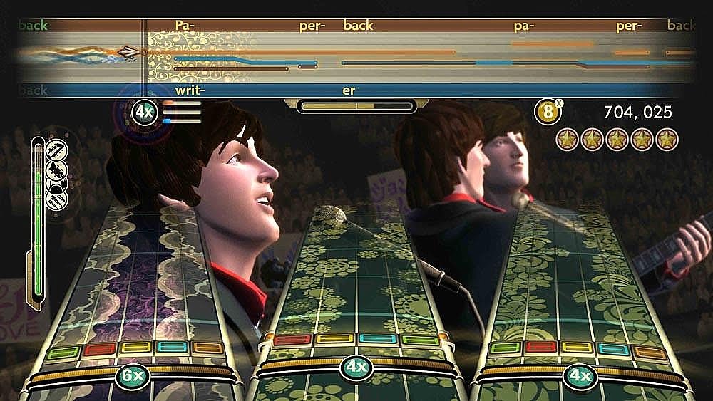 On harder difficulties, the game gets a bit tougher, but this seems more due to the chronological manner in which the songs are presented. You’ll get easy songs mixed in with a few tricky ones, but overall, nothing impossible to beat after a few tries. You might be smiling during “Do You Want to Know a Secret” and “I Want to Hold your Hand” but by the time you hit some of the psychedelic and more introspective stuff, you may want to sit down for a few of the more unusual tracks. Even so, the game is never frustrating (no insane finger- bleeding tap-out solos as found in some of the modern RB and GH games)… unless you have two friends who can’t sing that suddenly decide they want to try three part harmonies. This is a new feature added to the game and there’s a stellar tutorial that shows it’s tougher than it looks and sounds. Even if you dislike the Beatles despite the game’s brilliant presentation, you can’t knock the fact that these guys could sing some really perfect harmonies.
