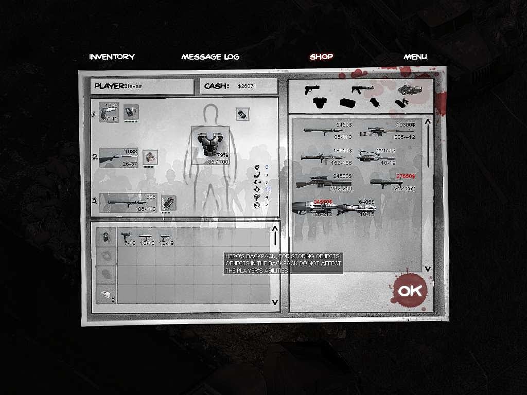 Are you a fan of insane isometric run ‘n gun action with a dash of RPG elements, a healthy weapons selection and HUNDREDS of enemies onscreen exploding in gobs of gory goo? Well, Sigma Team has been a “go-to” source for games that follow that exact pattern for a few years and their latest effort, Zombie Shooter 2 is 100% complete and ready to purchase and download right off their website. The game follows the same mold as their Alien Shooter series of games, but the undead factor is one that really sinks its teeth into you a bit more than gigantic bugs and mutated dino-beasts…