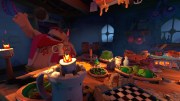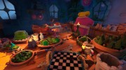 The maps range from the amazingly fun options village to a supremely candy-colored castle, a massive, mostly dark giant’s home and other awesomely huge set pieces. Going through the asset disk and leafing through the slim game art book that came with my reviewable code, I was amazed at how close some of the detailed production art resembles the final product. It’s impossible to not play through the game and be totally blown away by new sights as each new area is unlocked. Rich colors and excellent level design abound, depth of field is used in very spectacular fashion and if I still scored games individually for graphics, I’d give this near perfect marks for execution. There is a bit of slowdown with four players and a lot of enemies onscreen and as of yet, I haven’t yet played online (I’m writing this review before the game is in US stores). I’ll need to check back in a few days or so after the retail version ships to see how the game plays over Xbox Live and PSN and how many folks are out there chopping away at each other.