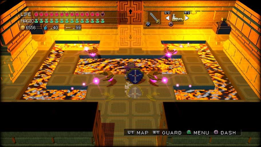 Developer Silicon Studio (turn those letters sideways and it spells From Software, I think) has done a wonderful job in bringing 2D pixel art into glorious 3D block art, using some cool modern effects such as depth of field, lovely water and magic spells. That giant sword you may have seen elsewhere may be intentionally humorous (Smilin’ Bob jokes were rampant during the press event), but the game isn’t a one joke show at all if you know your 8-bit hits and misses. I know I’ll be poring over my Famicom collection between now and the time a review copy arrives so I can crack up a bit more at the references. Still, I can see some critics and players going off the deep end to overly criticize this one for not being “innovative” in this day and age (*yawn!*). However, they’d be missing the point of the experience entirely. What’s here is a fantastic little chunk of retro game bliss wrapped in a shiny PS3 candy coating and at $40, it’s an absolute steal if Memory Lane is a favorite destination. Even better, you don’t need to blow on the game disc to get it to run!