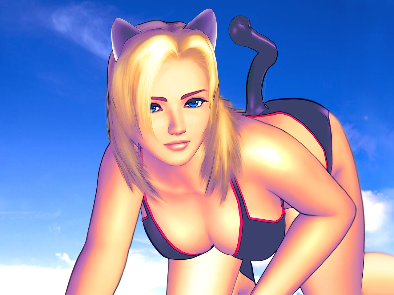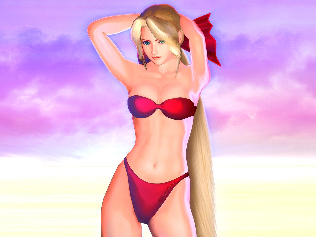 Tecmo added different sets of omake images on the Japanese and US versions of Dead or Alive 2. Tina to the left there and the seven pics below the jump are from the US version of the game and the next five are taken from the Japanese Limited Edition release. I’ll need to see if the Japanese standard edition of the game has the same bikini shots as the US version, but I actually prefer the art from the LE disc a lot more.