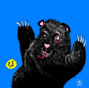 Holy cats. Hell, I’d bet good money that Edvard Munch never dreamed his creepy little painting would rake in such an insane amount of money. Then again, he DID do four different versions of the thing, so perhaps he was trying to drive the future value down, a ha, ha and ha. Anyway, that amount of money rather greatly annoys me. So much so, in fact, that I did my own version of The Scream unintentionally yesterday. Hey, I can play the poor artist part VERY well, especially as I’m poor (and an artist when I feel like it). Say hello to the Grizzly Pawppet! Growl! Now, where’s my damn millions?