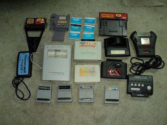 Some Game Genies and other enhancement devices. Amusingly enough, I never really used these at all other than to try to play import game carts/CDs or to mess about with games I finished. I have a few other converter carts in another bin (I know I have a Genesis Game Genie or two around here somewhere), but I’ll need to move some heavy stuff to get to those…