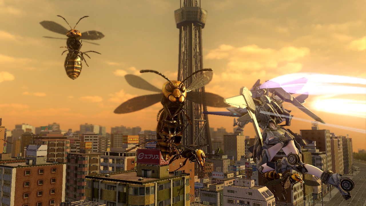 Nice. While the game’s Japanese cover art was a relatively simple shot of multiple motherships converging on an about to be invaded Earth, the North American art features all four playable classes and some of the many enemies you’ll face off with in this BIG bug and ‘bot blast fest. I loved that they used in-game character models and not a standard painting, although the import version DID ship with one of two reversible cover images done in a cool manga style. I’ll put in a quick Q to D3PoA’s PR and see if we’ll be blessed with that alternate art choice, but even if we don’t get them, this one’s a fine looking bit of art that will make those non-EDF playing pals of yours automatically ask what’s up with that cast of armored guys and gal and that upside down spider that’s making them nervous. Five new screenshots are below: