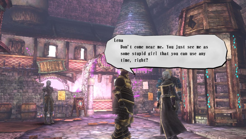 On the other hand, had they been fully voiced, the more salacious elements of the game would probably have earned the game an AO (Adults Only) rating just for the sheer suggestiveness alone. Quests can be accepted from either a “hostess club” on the main floor or a much more dingy-looking guild below.