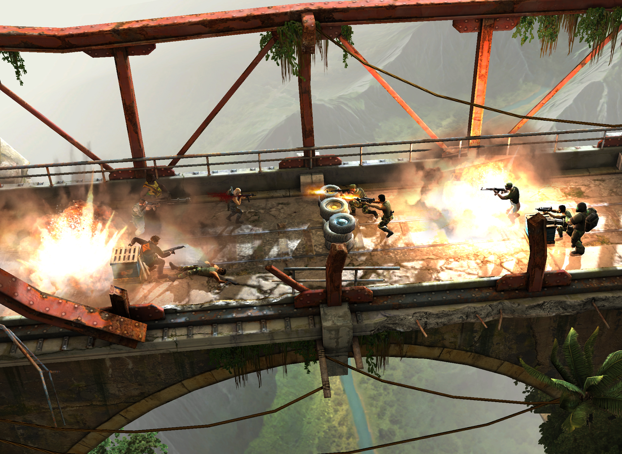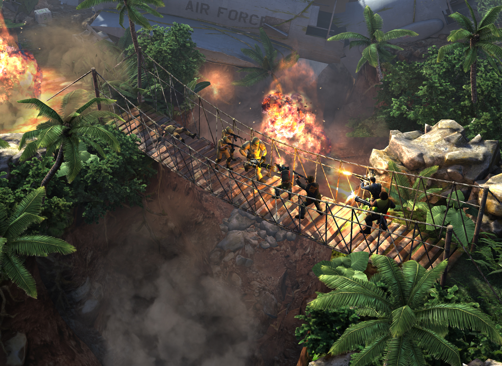 In a way, The Collectables reminded me of a sped up real time version of Red Lynx’ two Pathway to Glory games combined with a dash of Company of Heroes. The missions I saw took place in a lush jungle setting with enemy waves coming in from a few points on each map and attacking fiercely right from the start. The Hollywood action flick aesthetic is high here, with bodies flying and plenty of destructibility. While this may remind some of you of that licensed mobile game based on The Expendables, iPhone, iPad and Android users will certainly have a better looking and more fun to play game than that one was. Additionally, character acquisition (through a card system) and customization will be key in giving every player the opportunity to create their own squads of hell-raisers that can more likely than not compete in matches against other live players once the game launches.