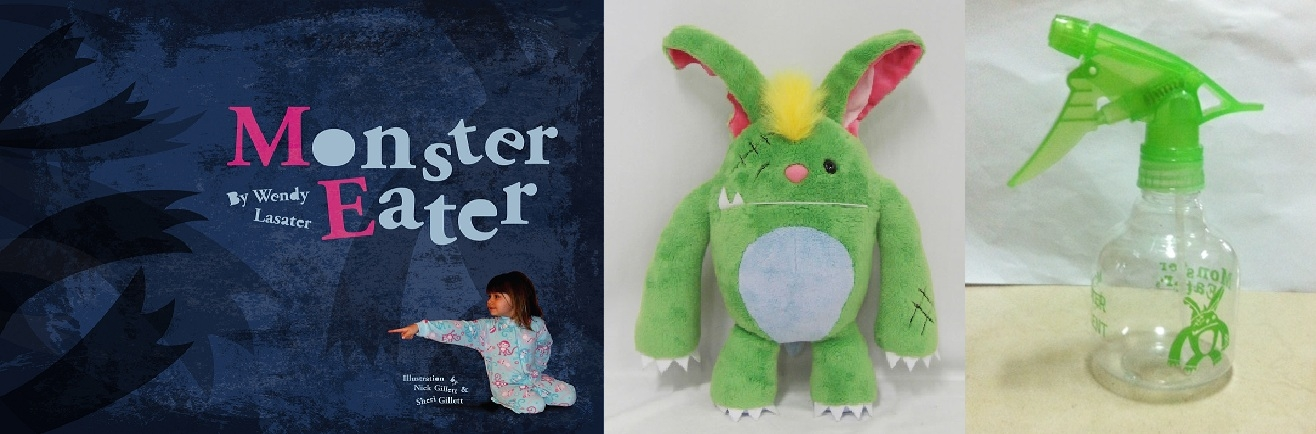 One look at this critter shows he’s a tough guy with a soft side even adults would want to hug. He’s got battle scars from fighting off and beating all those dream beasties, a look that says “I’ll protect you, No matter what!” and his green complexion makes him perfect for girls or boys. The Monster Eater Kit ($34.99, available NOW) gets you your own Einar, a wonderful book (“The Monster Eater’s Battle Under the Bed” 23 pages, illustrated by Nick and Sheri Gillett ) and a Monster Repellent Spray Bottle (which you can fill with plain water OR nothing if you’re a clever parent and say Monster Repellent is invisible and ONLY can be seen/felt by monsters).