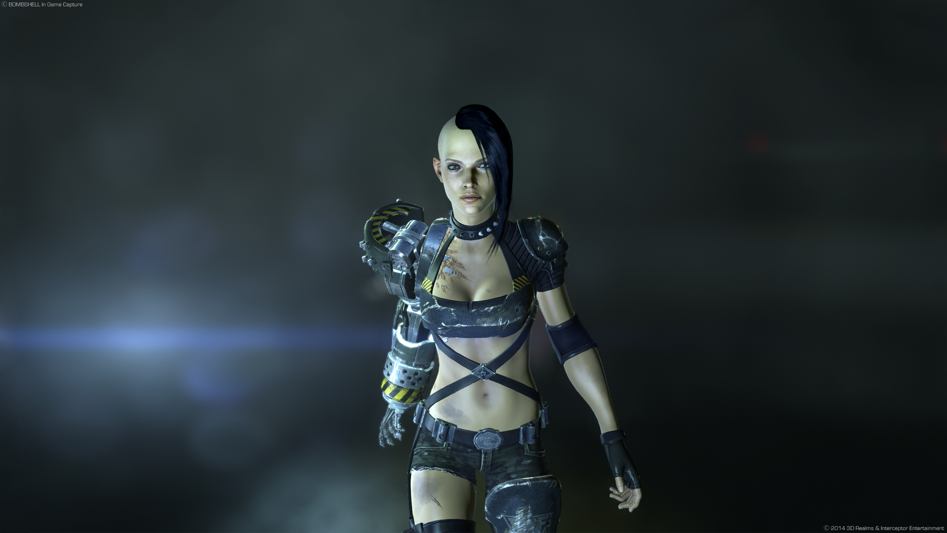 While this Bombshell reveal trailer isn’t revealing a stitch of gameplay (just a nicely scarred under-clad gal with a punk haircut and metal arm who seems to like her whiskey, watching cable news, firearms and motorcycle riding), fortunately, the game’s official site has screenshots to ogle and yep, they’re below.
