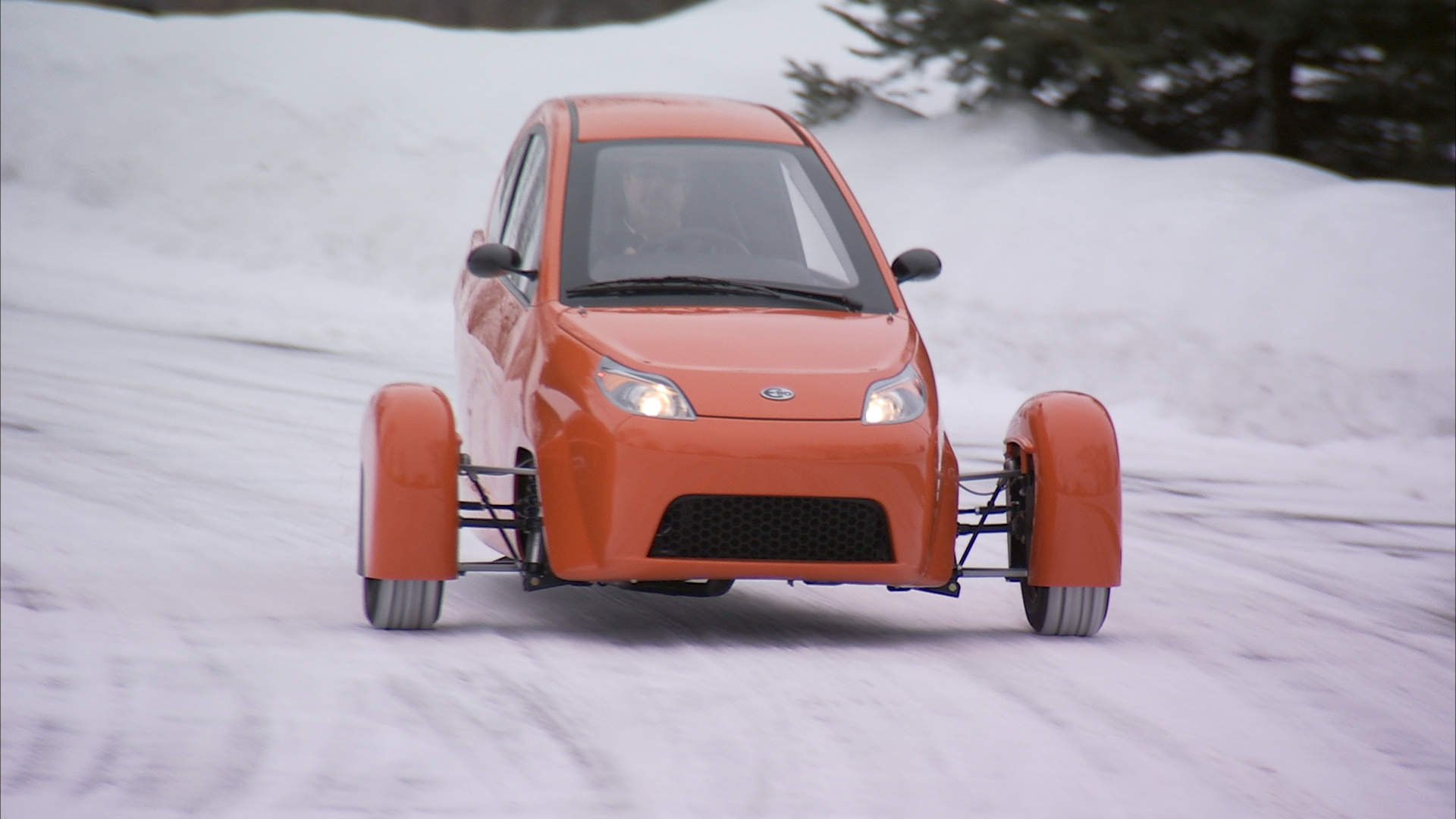 Another thing about the Elio is it’s been road tested in varying weather conditions. Each one will come with a 3-cylinder engine, front wheel drive and an anti-lock braking system (ABS), making it fairly simple to drive. The rolling video demo showed some nice snow driving (shot in Michigan) on paved roads that had a light coating of plowed snow. Handling around a turn looked stable, but I’d gather you won’t be attaching a big truck-sized snowplow to the front and clearing the road in a few feet of blowing flakes in the winter or towing a houseboat in the summer.