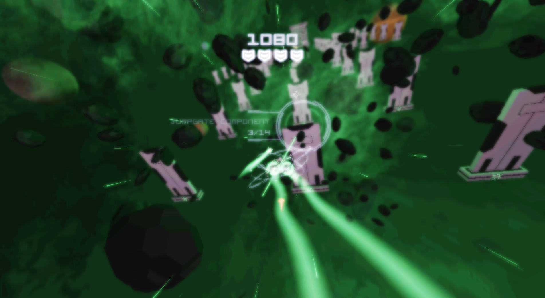 The preview build had four different levels and four types of ships to play around with, each linked to one of the stages. While I could sit here and make comparisons to Star Fox, Panzer Dragoon, Rez and other excellent sci-fi or fantasy shooters where you’re set on a path without much deviation, Kromaia outdoes those games by allowing you to go anywhere you point that ship you’re flying. There are clear goals in each map, but you can choose to go off what you thought was a predetermined path and zip around at your leisure while trying not to get blown into plenty of pixels by the nicely aggressive enemy AI…