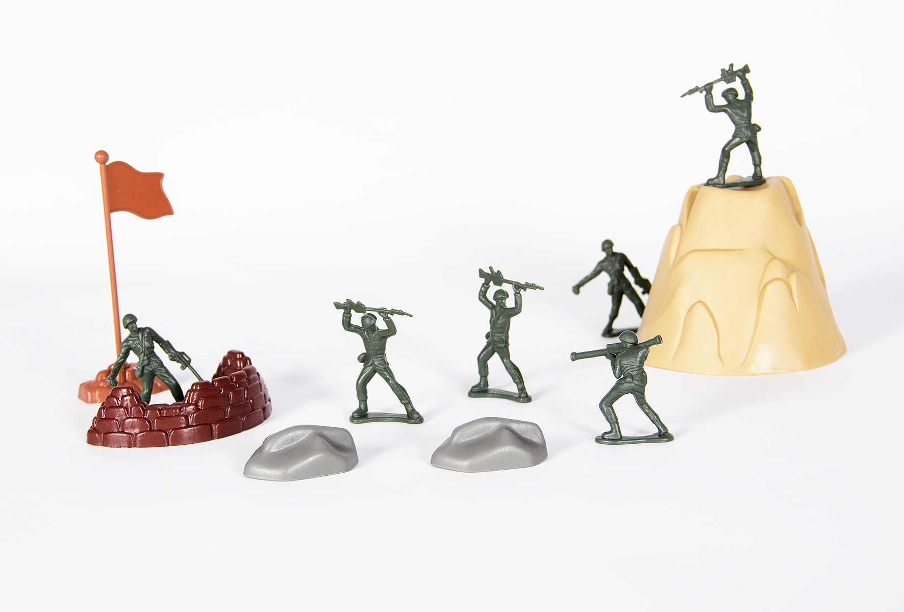 Before you even ask, yes, there is a National Toy Hall of Fame. It’s part of the National Museum of Play up in Rochester, NY and I’d say it’s a bucket list trip for anyone with even the slightest interest in any sort of toy or game from their childhood. Today the Museum inducted a trio of all-time classics into the Toy Hall of Fame and some of you are already grinning at that photo above. This year’s inductees made me laugh out loud because as soon as I heard the news this morning, I was hoping to heck that someone at the Museum would have made a cool diorama with a few squads of Army Men on some alien or other landscape (maybe Washington D.C.?) fighting off an “invasion” by a giant Rubik’s Cube with Bubbles floating in the shot to give it the look of some low-budget sci-fi flick.