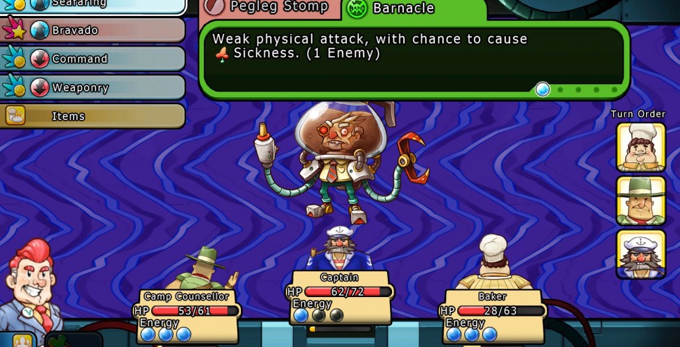 As your team grows, each member needs to be leveled up via joining an active party or by sending them to school. Allies being schooled gain experience, but inactive party members don’t. This forces you to swap in different characters frequently enough that you can keep your growing team fairly close in levels to some extent. Of course, this all depends on how you play the game and if you’re collecting allies as soon as you can. Combat is turn-based and require learning enemies’ strengths and weaknesses. Each character has a few basic attacks and special attacks, but there’s no “magic” per se here. Instead, normal attacks gain them points that can be used to pull off assorted elemental and other strikes. This adds a layer of strategy to battles as not having enough points or running out in the think of things can sometimes spell defeat.