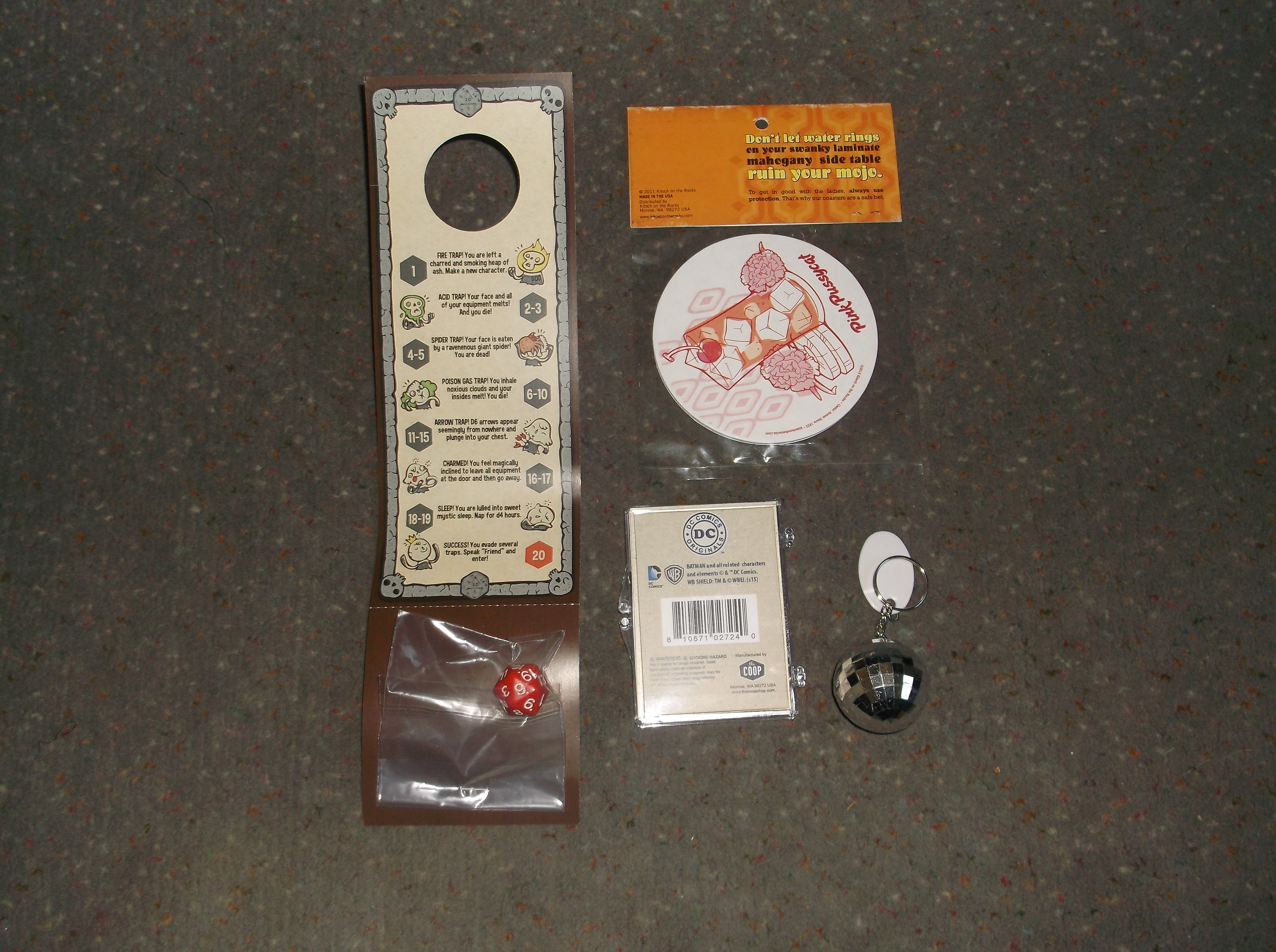 That two-sided Dungeons & Dragons-inspired Do Not Disturb sign is in use, although if you were here, you’d be rolling that D20 die in another room (and if you have to walk back from a closed room to roll a die, that’s an automatic KEEP OUT right there). The coaster set, DC Comics villain magnets and disco ball are going to a friend who’s a big comics nut who happens to make some decent adult beverages. He dislikes disco, so the ball will be a nice gag gift. Of course, he’ll hang it in his car where he tends to put a few oddball items people give him or perhaps pass it to his wife who DOES like disco. Hey, I don’t mind if you re-gift anything I give you as long as someone’s smiling at the end of the day. In any event, if you’re looking to surprise that special someone with some neat nostalgia from the 60’s, 70’s or 80’s every month or even for a few months, Retro Pop Box is waiting for you to pop by for a visit.