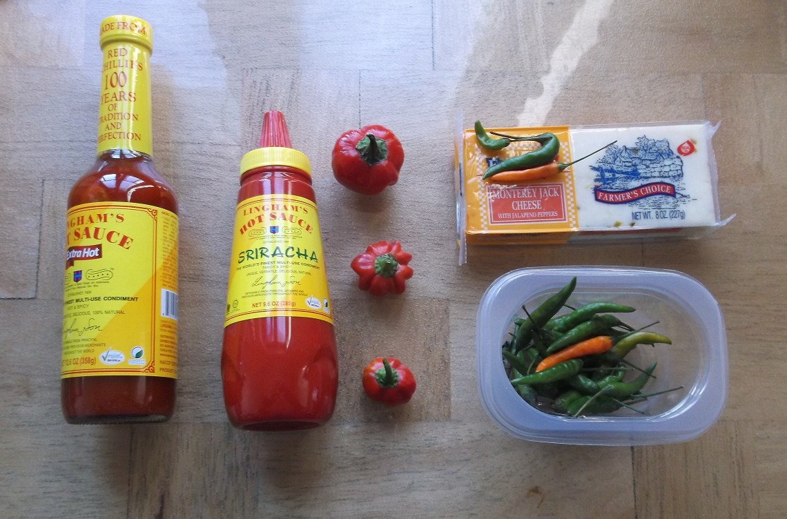 - Lingham’s SriRacha Sauce (to taste, but about a teaspoon or so of each, more if the peppers are larger, of course)