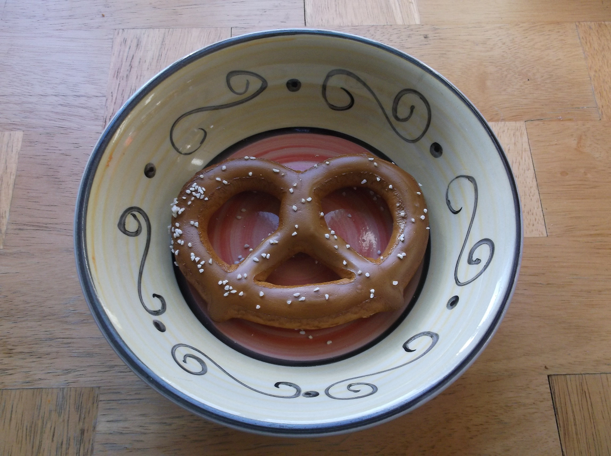 Hey, look! A random recently baked hot pretzel has appeared! Hi! Would you like to stay for a snack? There’s a movie coming on I really want to watch… (Pretzel nods) Really? Cool! Well, just have a seat in this niiiiiiice and comfortable bowl here and I’ll check in with you in about 15 minutes. La la laaaaa…