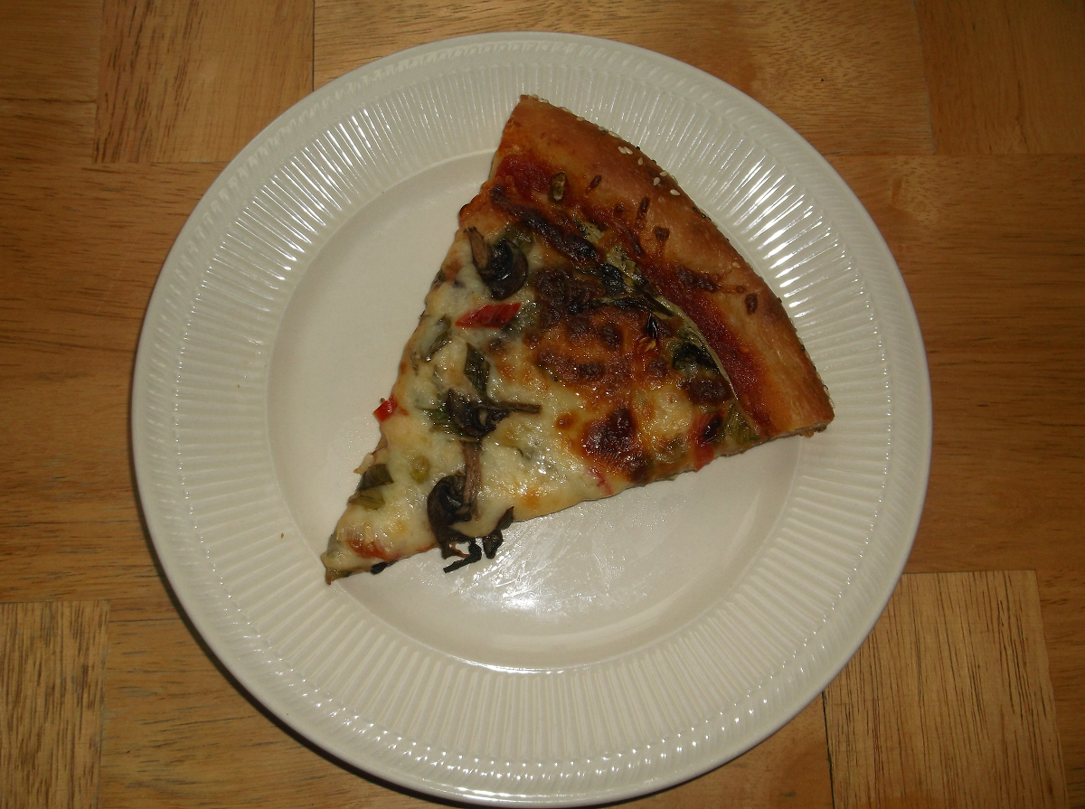As for the second slab of dough, it got turned into a mushroom/onion/mixed pepper and half Sea Crunchy pie. Sea Crunchy? Yeah, SEA CRUNCHY. That stuff is my new snack obsession and you need to try some at some point. Among other things, it works fantastically in pizza if you use the Olive Oil variety.  Even better, if your kids love pizza they won’t even know you’ve snuck seaweed into their diets. But you should tell them anyway as you whip out a pack and start munching away.