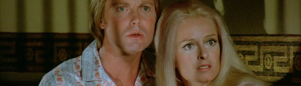 Plot: Cheapie horror flick being made in a house where seven died as a result of some dummy reading a bad book. Cranky, unlikable director (John Ireland) wants that authenticity and verisimilitude, so yep, out comes that old book, which leads to predictable outcomes for all. The End. Yeah, this one’s a total yawner save for the final sequence, folks. Still, it’s worth a watch for the “behind the scenes” bits where you see the film within a film being made that show making the magic happen isn’t so magical at all.