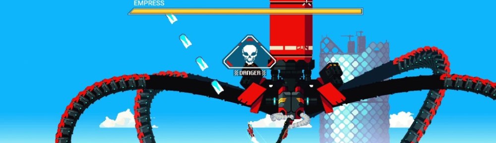 While it looks like a basic side-scrolling shooter from screenshots and snippets of game footage, levels take place in small areas where you’re limited to flying left to right plus any acrobatic movements Ash pulls off. In other words, fans of the simple-looking but stellar shmup from a few years back, Luftrausers, will be in for a treat. Barrel roll dodging, boosting, and precision shooting with an increasingly varied weapon selection Lem will install once they’re gathered and with 28 different guns, payloads, and flight components to collect, you can tailor the LANCE to whatever missions throw at you. The game has 30 missions, 11 bosses and there’s even a New Game+ that adds a nice set of even more tricky foes and some cool new LANCE upgrades. There are a couple of options that allow a few gameplay tweaks, but try not being tempted by a few until you play normally for a bit.