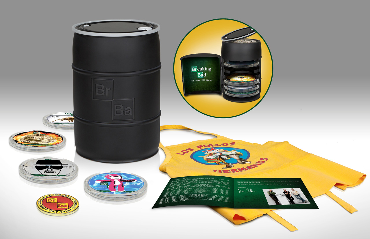 Here’s a good reason to quit smoking (or cooking) all that meth and start saving up some of that cash you’re throwing out the window like a certain Mr. Pinkman. $300 (or less if you shop around online) will get you this set of 16 Blu-Rays packed full of every episode of the show PLUS a ton of special features (or whatever 55 hours weighs these days). So yeah… “Fire in the hole, bitch!” – go dig up one of those barrels you buried in that secret spot and buy up a ton of these to give out as gifts if you’re so inclined. As for exactly what’s in the box, just peek below the jump for the long press release… go on, you KNOW you want to…