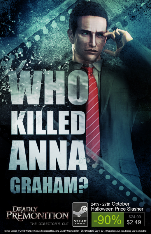 Well, ooh – news has landed in the inbox, so here’s an update: THE GAME IS NOW LIVE ON KICKSTARTER! Three bucks gets you a Steam code for the bizarre horror/mystery action/adventure adventure Deadly Premonition: The Director’s Cut, while $30 gets you the board game and that Steam Key mentioned above. The game will come in Standard and Special Edition versions and yes, stretch goals are in the works should the game push way past its initial funding goals.