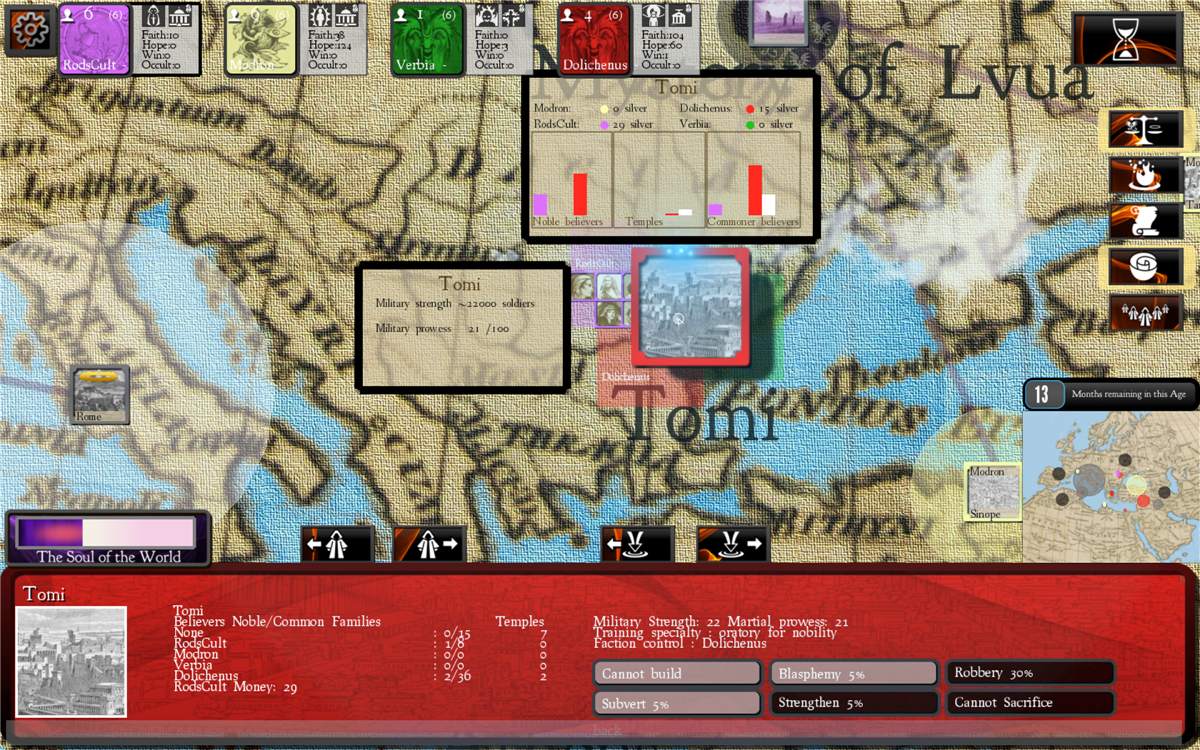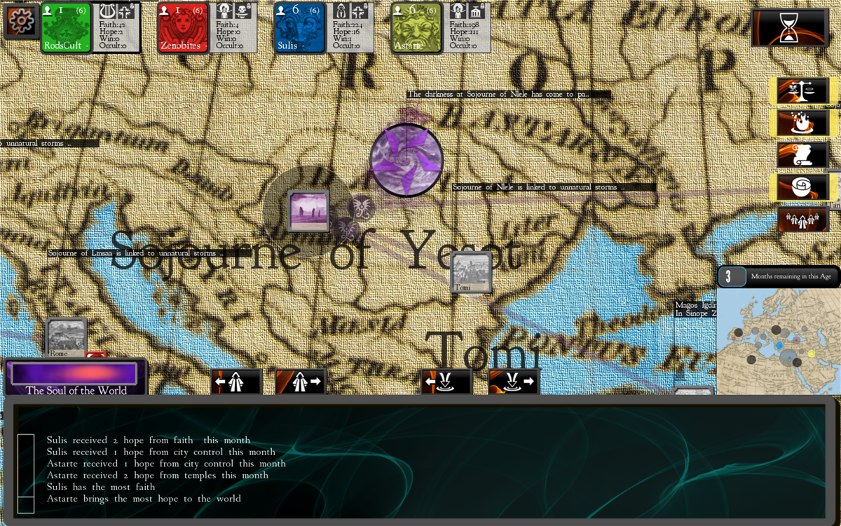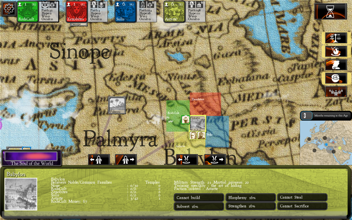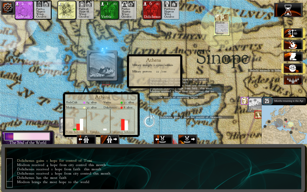 Carefully manage your religion’s Faith and Hope levels in order to gain power and influence