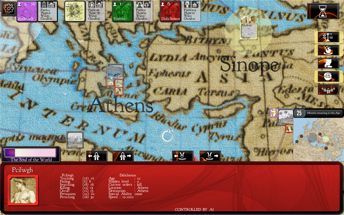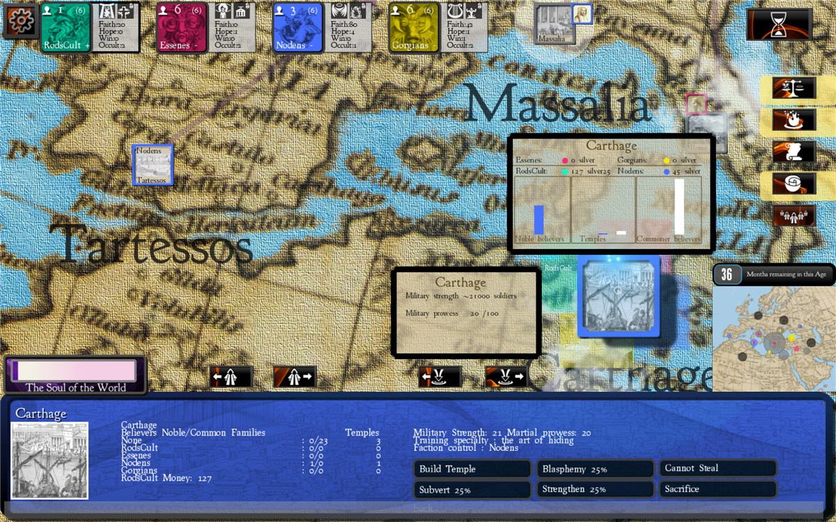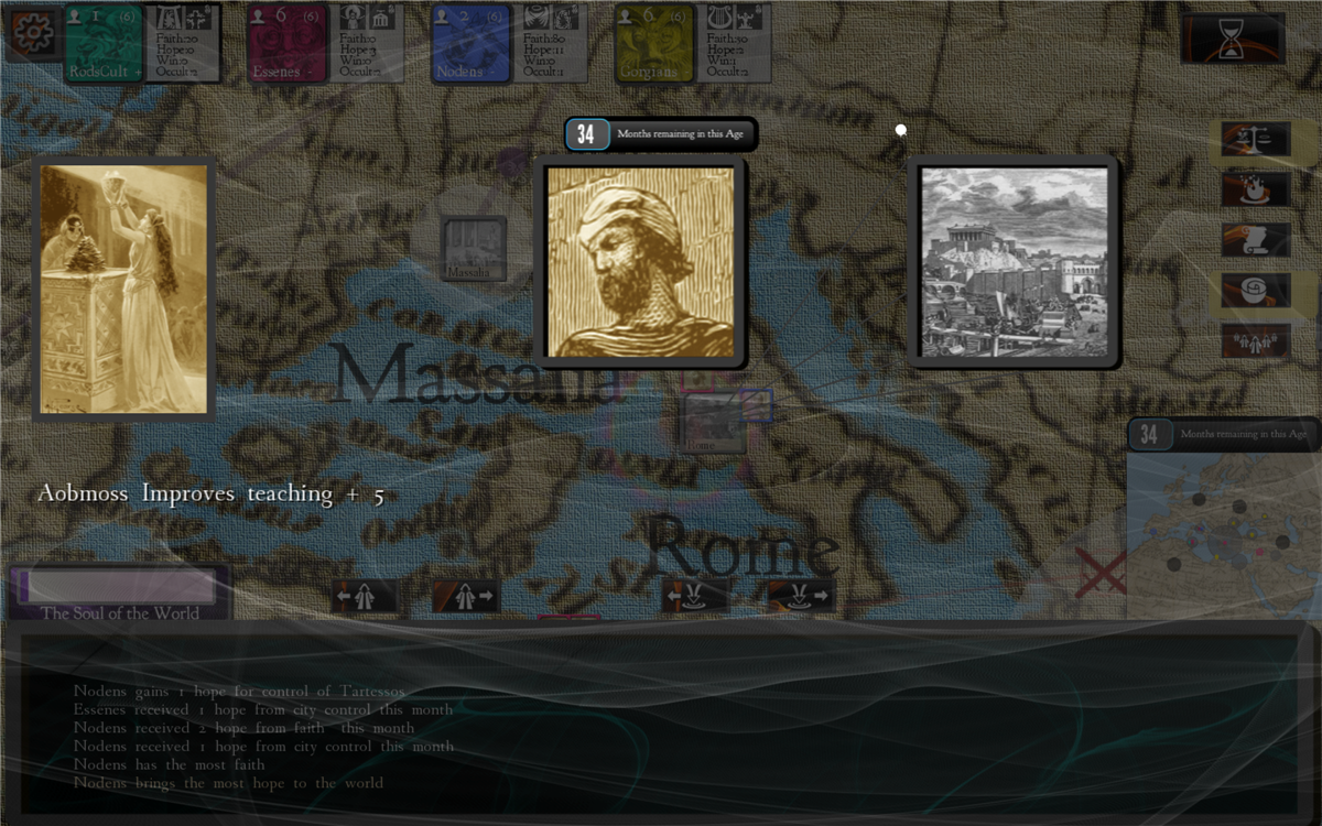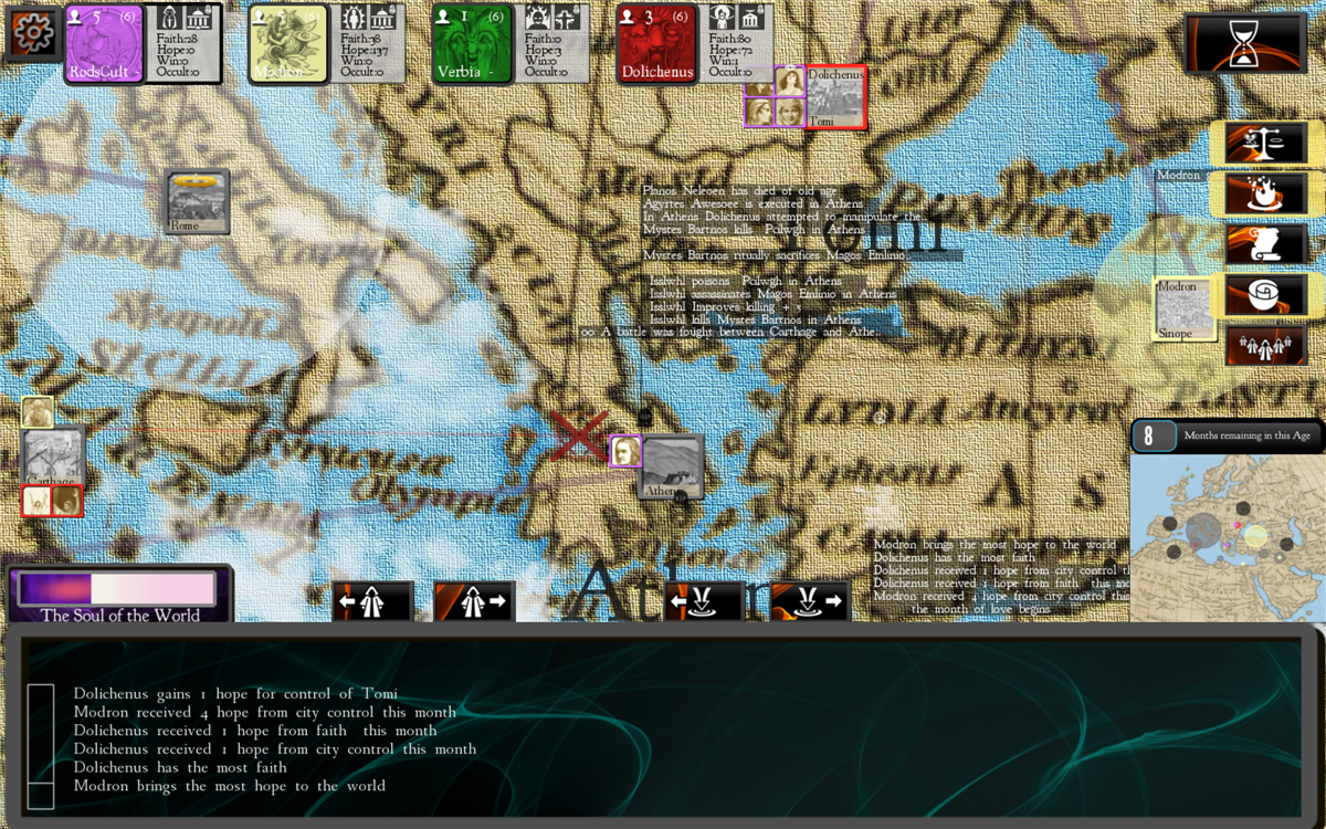 Carefully manage your religion’s Faith and Hope levels in order to gain power and influence