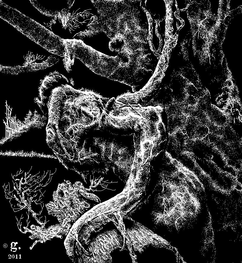 Oof. I wasn’t feeling too well this morning, but that was probably more due to lack of sleep and the weather outside getting more winter-like (Today only! Temperature 20% off!). Anyway, I was going to watch some movies and write about them, but I didn’t get around to it. Yeah, you know something’s off when you blow off entertainment to do other stuff. Actually, I ended up going through some stacks of PC games looking for a few titles for a future article, but got sidetracked going through two hard drives here to see if I had a really old game installed someone asked me about last week. Meh, I didn’t find it (yet), but while online looking up stuff earlier, I did eventually knock out a quickie tree drawing (enjoy!):