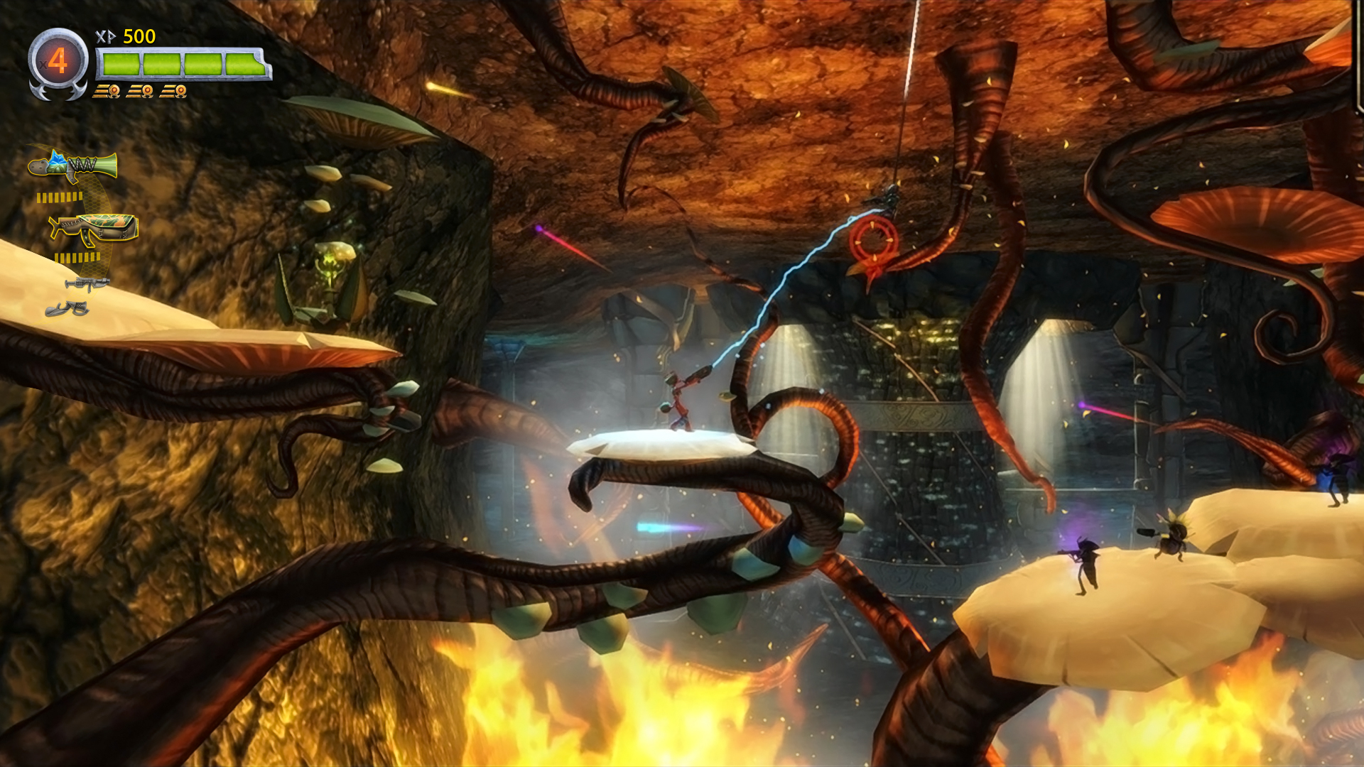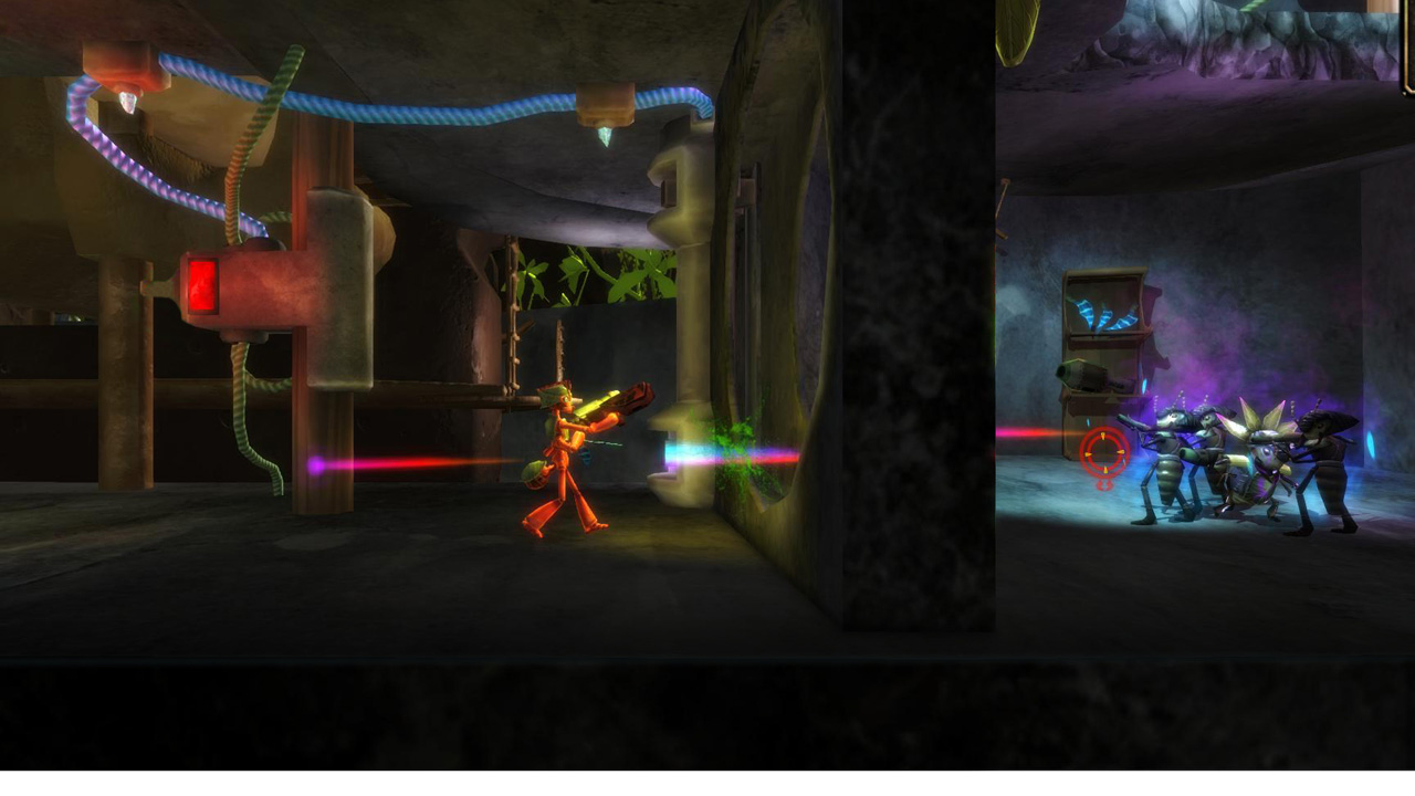 You play a nameless ant warrior who’s part of a massive ant army gone to war against termites, wasps and other bugs big to small, but you’ll more than likely than not care more about surviving the levels than following the story. The game is billed as being “2.5D”, but what that really means is this is a side-scroller with a second plane enemies will attack you from every chance they get. Controls, movement and animation are solid, with an Xbox 360 or other game controller your best bet for survival. Keyboard and mouse do function extremely well, if you choose to go that route, but this is a game meant to be more fully enjoyed with a two stick analog. You can carry up to four different weapons of any type (once you unlock them) into battle, so choose wisely. The dozen weapons are excellent for the most part, but you’ll need to be careful as they all have a reload/cool down period. Knowing when to swap guns or use melee attacks is key, as enemies appear in large enough numbers to overwhelm even the most prepared player.
